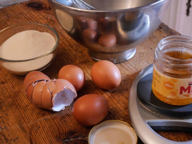 Next, whisk the egg yolks and gradually add the meadow honey to them.